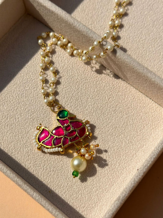 CS-49 One caret gold plated pachi kundan peacock Pendant mala