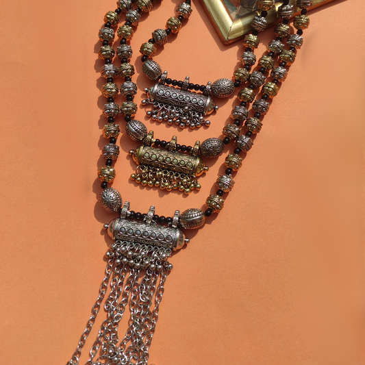ML-1 Oxidized German Silver Dual Tone Layered Mala
