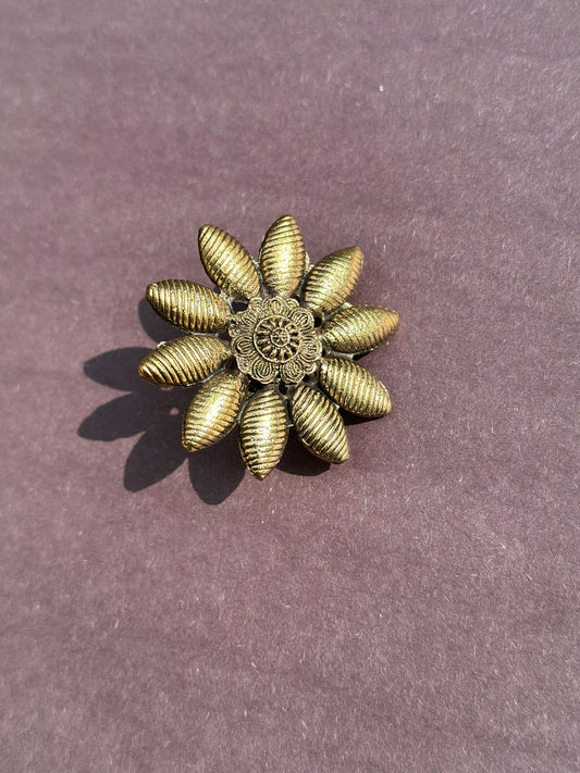 Antique gold plated adjustable size sunflower ring