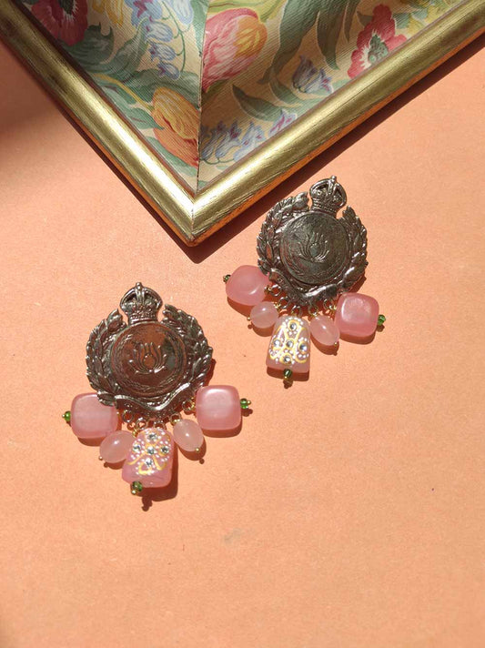 Antique gold lotus earrings with pink stones