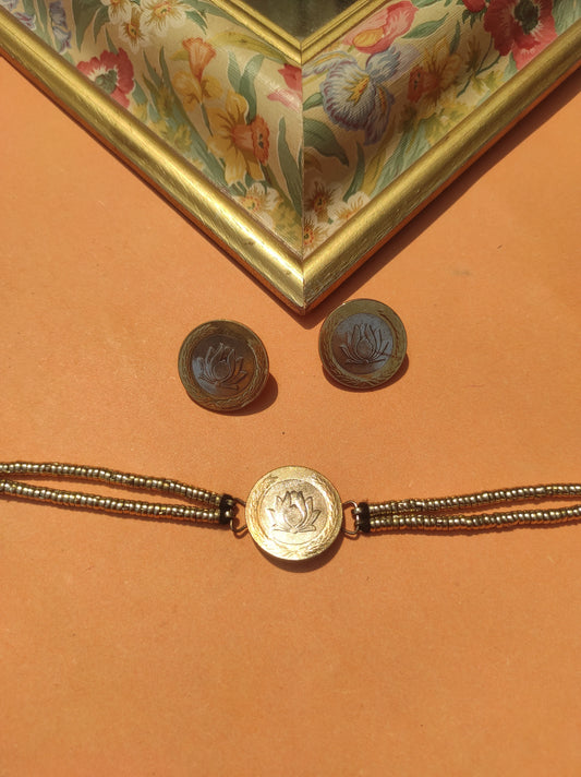 CS-19 Indian lotus coin choker with earrings