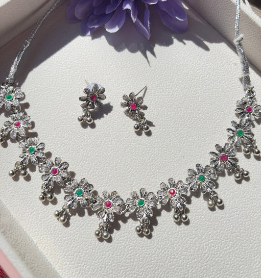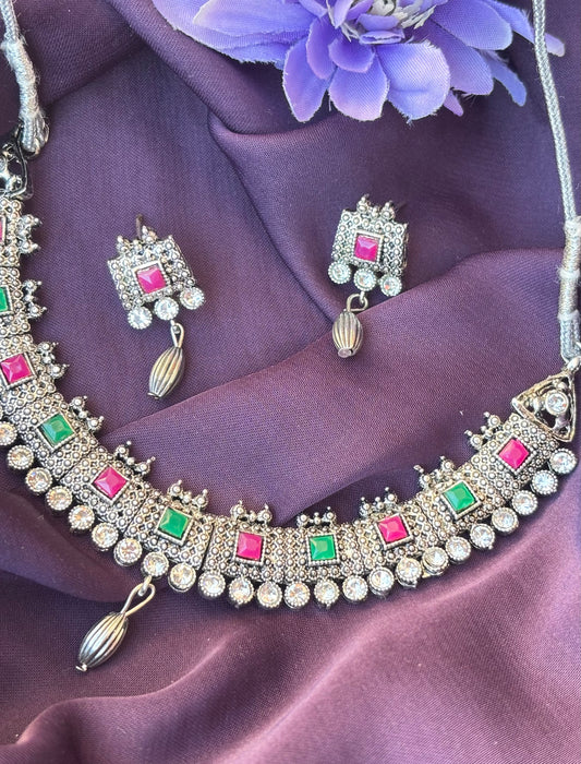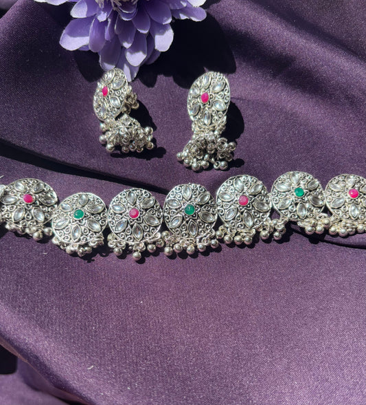 NS-5 (2 in 1 )dual sided wearable choker set with jhumki