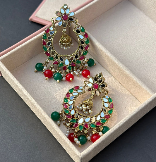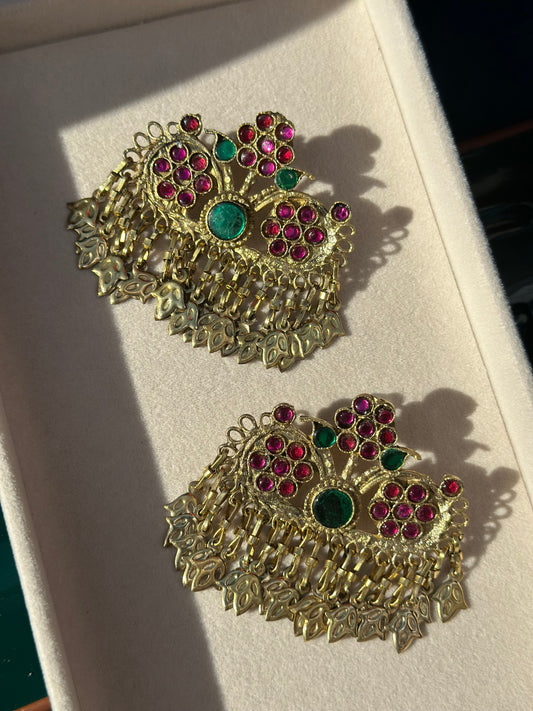 Intricate Design Jaipuri Kundan Bird Earrings With Backside Meena