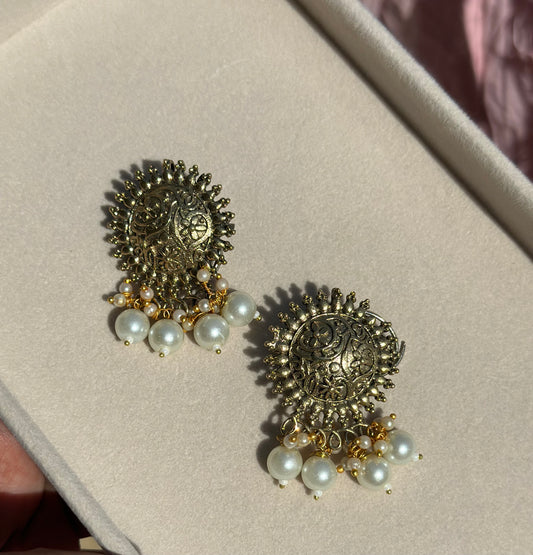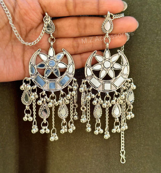 ER-30 Oxidized german silver mirror chand tara earrings with sahara