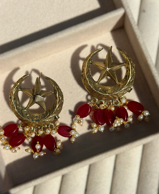 ER-11 Oxidized german silver earring with rubi stone hangings