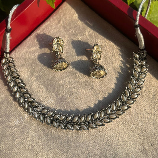 NS-5 (2 in 1 )dual sided wearable choker set with jhumki