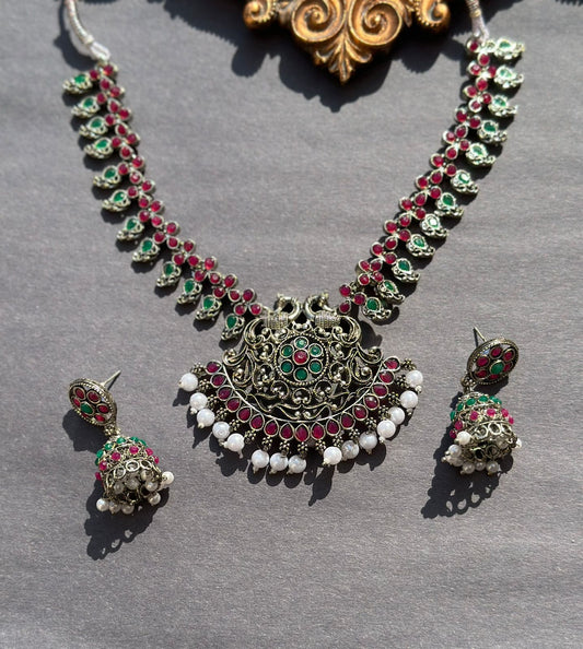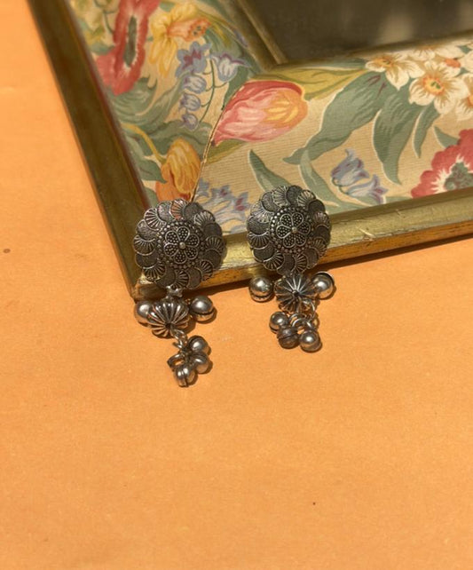 ER-11 Oxidized german silver earring with rubi stone hangings