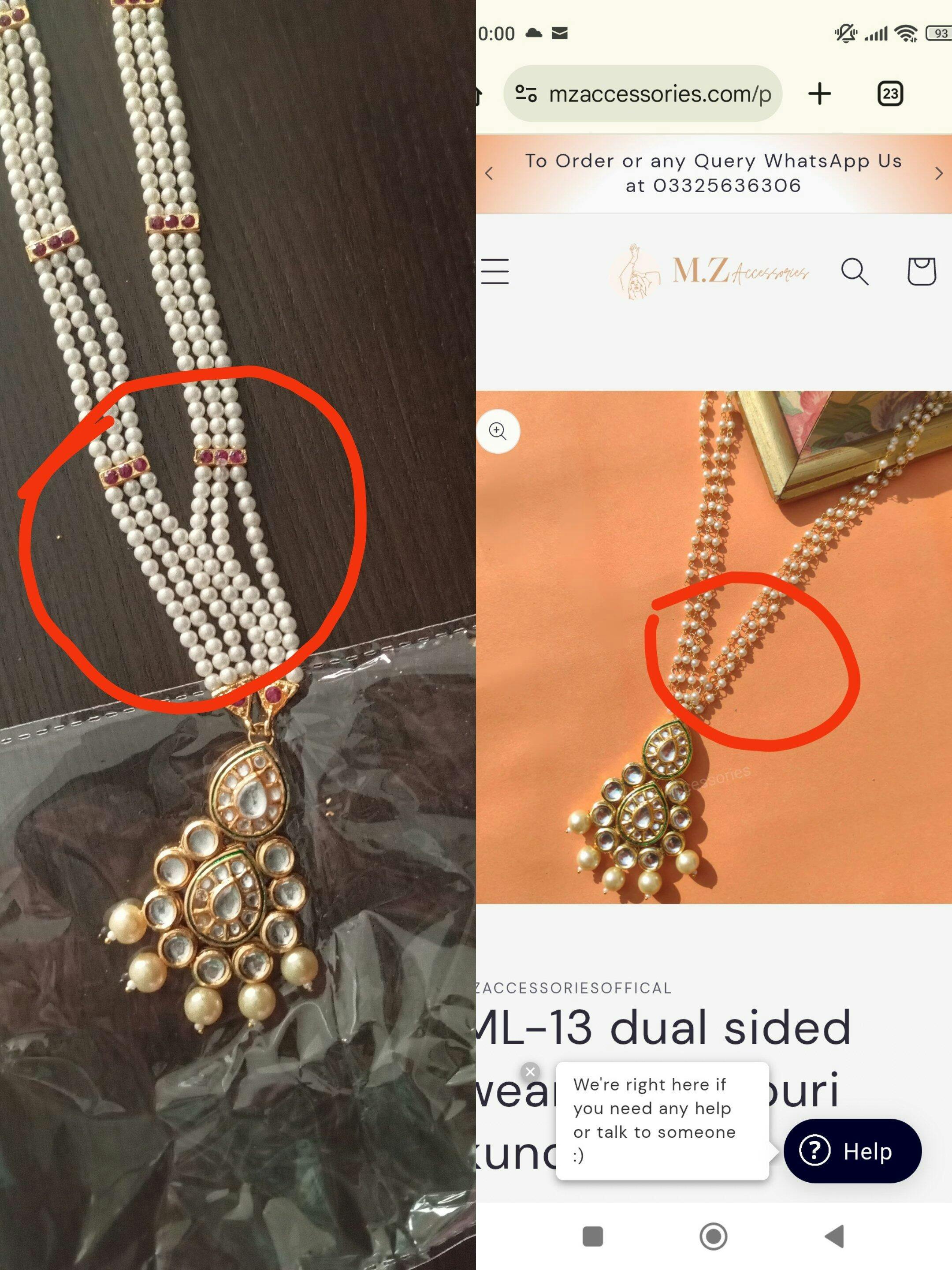 This exquisite dual-sided Jaipuri Kundan mala is a versatile masterpiece designed for any occasion. Crafted with intricate details, the reversible design offers two stunning styles in one, allowing you to switch effortlessly between looks. The antique finish and premium-quality kundan stones add a royal touch to your attire.